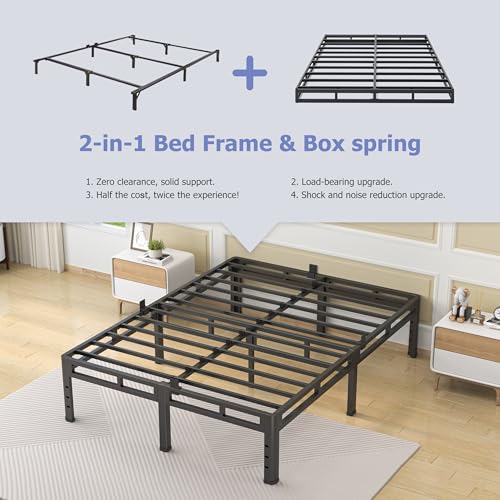 NKZ 18 Inch Queen Size Bed Frame, Metal Bed Frame & Box Spring 2 in 1 Platform with Round Corner Legs, 4000Lbs Heavy Duty Metal Frame, Mattress Slide Stopper, Headboard Hole, Noise-Free, Easy Assembly
