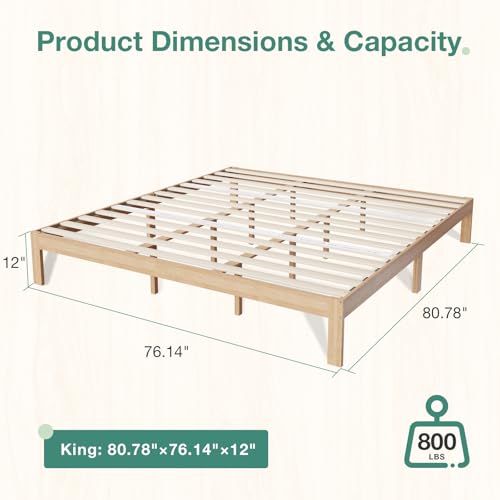 Specification: Novilla 12 Inch Wooden King Size Bed Frame, Classic Solid Wood Platform Bed Frame King Size, Sturdy Wood Slat Support, No Box Spring Needed, Easy Assembly