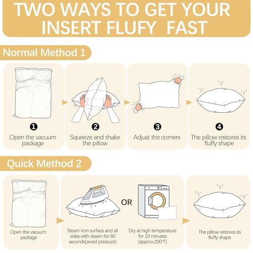 【Warm Tips 】The cushion insert is packed in vacuum compression. After opening the package, please give the pillow insert time to grow to be fluffy. It is going to create a wonderful rest time for you.