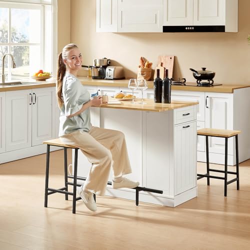 【Stationary Kitchen Islands include 2 Chairs】This Stationary island countertop is ingeniously designed. It is equipped with two metal bar stools in an industrial style. The chairs are sturdy and reliable, providing users with an ideal seating solution. The entire set is designed in an integrated manner, eliminating the trouble of matching and helping to create a professional-level home cooking workstation.