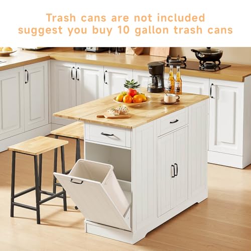 Specification: ONBRILL Stationary Kitchen Islands Include 2 Chairs, 47″ Kitchen Island with Drop Leaf, Home Bar Table with Spice Rack & with Trash Cabinet, Island Table for Dining Room with Power Outlet, White
