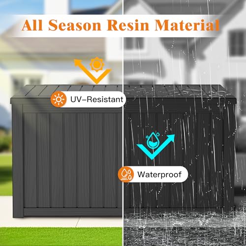 All-Weather Durability (High-Quality Resin): This outside storage box is made of the up to date high quality resin, featuring water resistant, UV-resistant, anti-fading, and anti-bending properties. It withstands rain, sun, and harsh outside conditions, making it ideal for long-term use in backyards, patios, or pool areas.