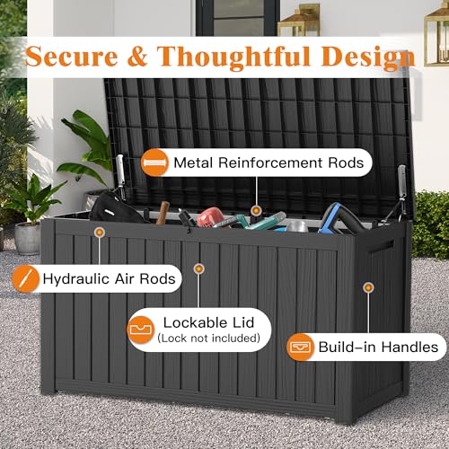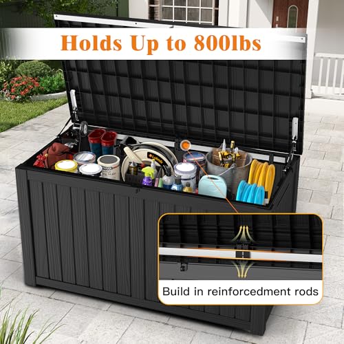 Outdoor Storage Box – Lockable Waterproof UV-Resistant Resin Deck Box for Patio Cushions, Pool Accessories (Black, 180 Gallon)