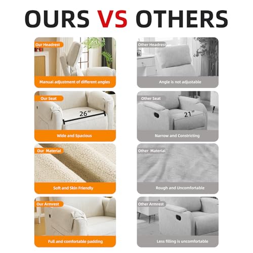 26″ Extra Wide Seat: The 26″ wider and larger seat is not only spacious and comfortable, but also suitable for a wide range of people, especially mothers and babies, as well as tall adults who can play and rest with their babies on the nursery recliner. The skin-friendly and comfortable chenille fabric and the stylish and beautiful design add a touch of sophistication to living rooms, bedrooms and nurseries.