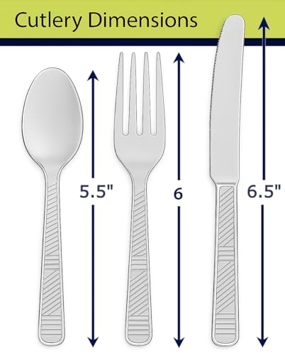 Party dimensions cutlery combo box, White, 300 count. 100 every of forks, knives and teaspoons. Designed for all occasions, banquets, parties, upscale catering and home. Disposable. Is available in a box.
