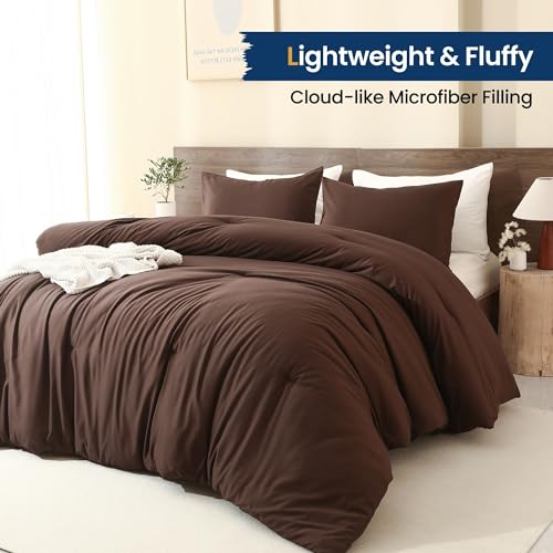 Paxrac Earthy Brown Comforter Full Size, Neutral 3 Pieces Comforter Set, Lightweight Solid Bedding Set, All Seasons Soft Fluffy Full Comforter Set (80x90In Comforter & 2 Pillowcases)