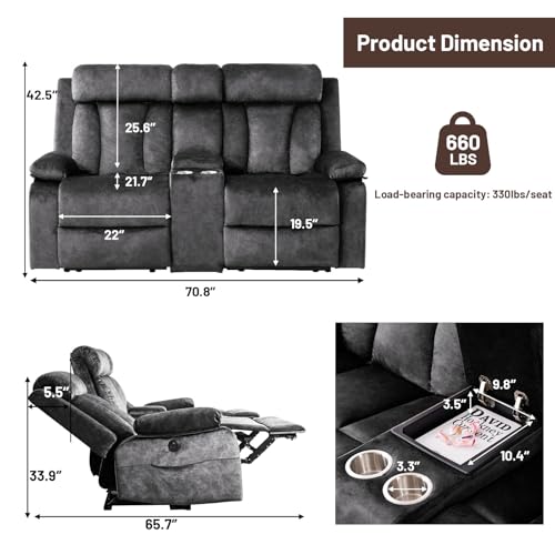 Sturdy Metal Base: The bottom of our electric reclining loveseat is made of a sturdy metal frame, providing stable bottom make stronger and has a load capacity of up to 330 pounds per seat, 660 pounds in total which can carry two normal adults