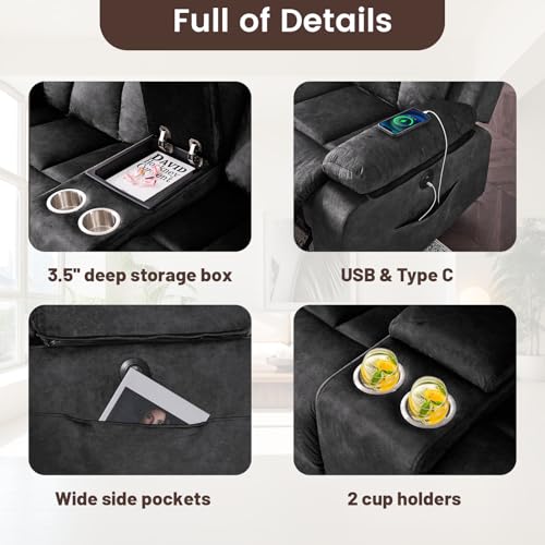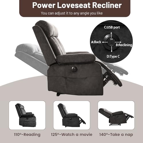 Specification: Power Loveseat Recliner Sofa, Electric Double Recliner with USB/Type C/Side Pocket/Cup Holders, RV Recliners Wall Hugger Reclining Loveseat for Living Room & RV & Home Theater