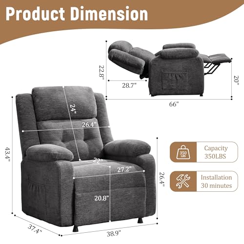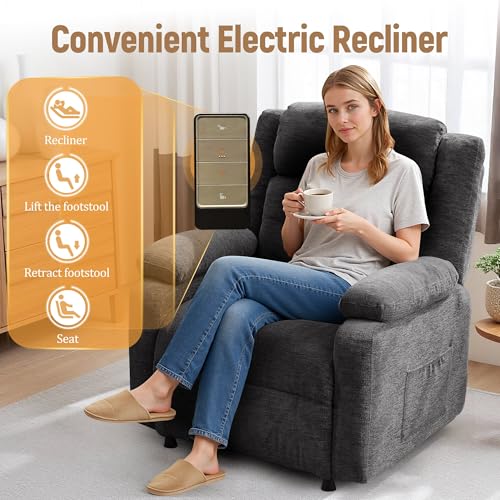Specification: Power Recliner Chair for Adults, Oversized Electric Recliner with Thickened Cushions, Chenille Fabric Reclining Chair for Living Room, Bedroom, Grey
