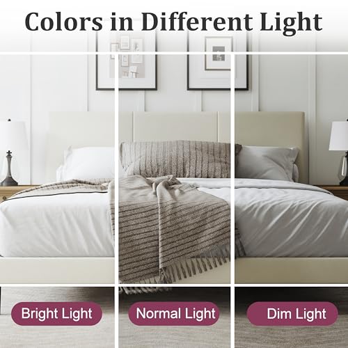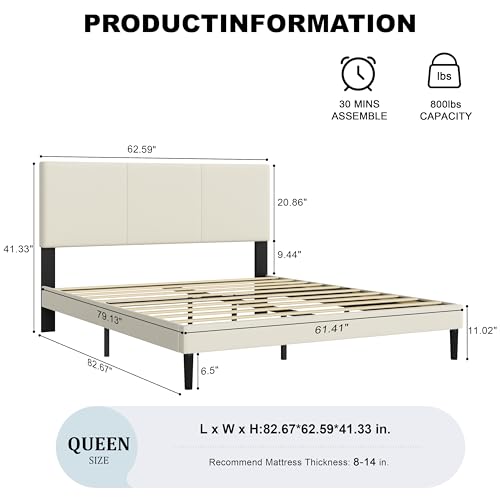 Specification: Queen Size Bed Frame with Headboard – Elegant Upholstered Vertical Channel Tufted Heavy Duty Platform Bed Frame with Slats, No Box Spring Needed, Easy Assembly, Modern Bedroom Furniture (Beige, Queen)