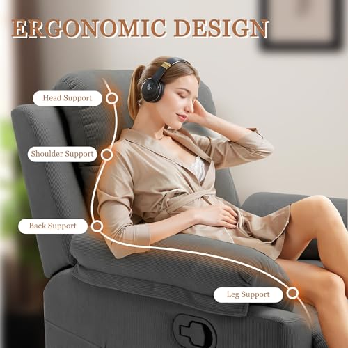 【High-quality Fabric】Made of soft and breathable corduroy fabric, which is known for its comfort and durability, this recliner chairs for adults is suitable for use in all seasons. The inner filling of the seat back, seat cushions, and the armrests is high-density sponge; this thickened design offers softer toughen as a way to relieve your stress. After receiving the product, all you wish to have to do is pat the backrest and armrests or leave them still for a at the same time as – the sponge will regain its shape