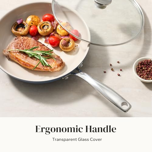 COOL & STURDY HANDLE: Crafted from lightweight, precision-pressed stainless steel, this ergonomically designed maintain ensures a comfortable grip. Double-riveted for exceptional strength and maneuverability, the ceramic skillet pan empowers you to seamlessly transition from stovetop to oven, allowing you to succeed in that flawless sear, brown toppings, or even bake