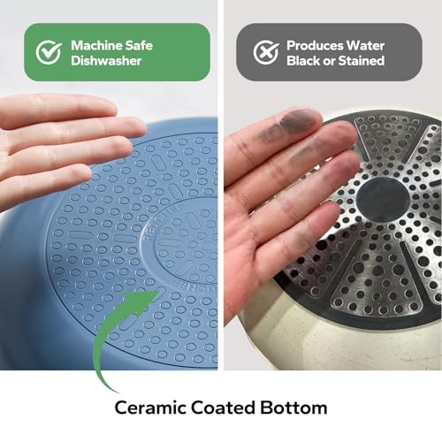 RAPID & EVEN HEAT DISTRIBUTION: Precision-engineered with bottom, our ceramic cookware set ensures uniform heat distribution, eliminating hot spots that can disrupt your cooking. This professional-grade design disperses metal thickness consistently across the entire nonstick cooking skillet, facilitating swift and even cooking of your dishes