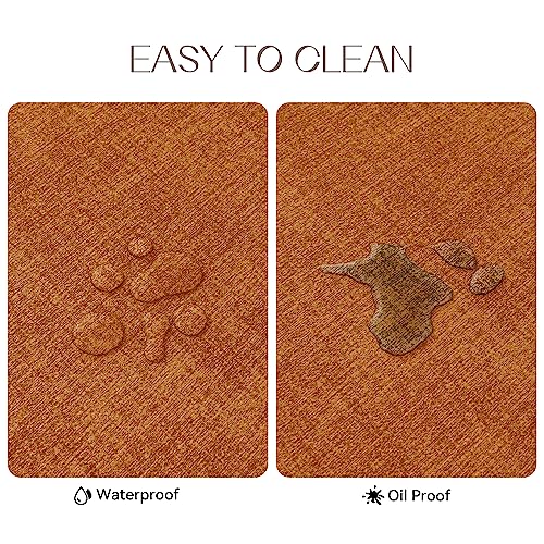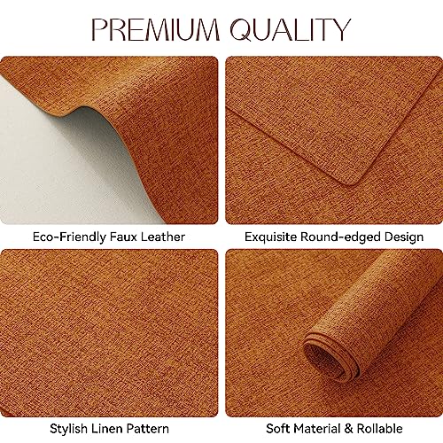 Romanstile Fall Vinyl Placemats Set of 6-12 X 18 Inch – Heat Resistant Place Mats 100% Waterproof Oilproof Wipeable Reversible Faux Leather Table Mats for Kitchen/Dining/Party/Outdoor, Orange