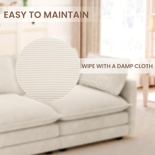 Specification: ROWHY 78” Sectional 2 Seat Cloud Loveseat with 2 Throw Pillows, Modern Corduroy Love Seat, Cozy Sofa for Living Room, Office and Bedroom, Beige