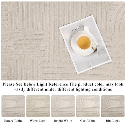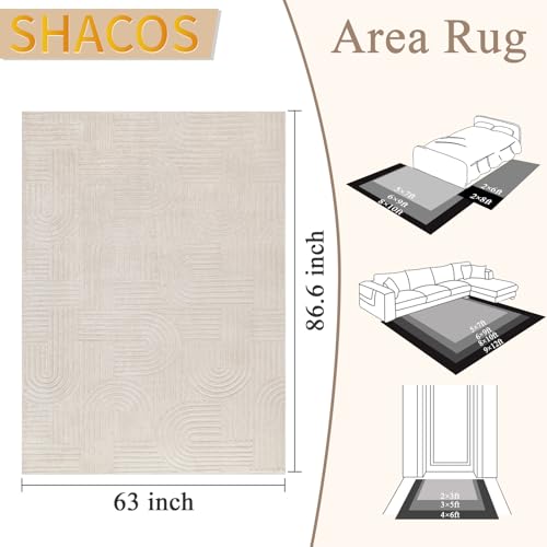 Specification: SHACOS Soft Cozy Fluffy Arch Pattern High-Low Pile Textured Area Rug 5’3″x7’3″ Non Slip Washable Modern Geometric Rug Stain Resistant Contemporary Carpet for Living Room Bedroom Dining Room, Beige