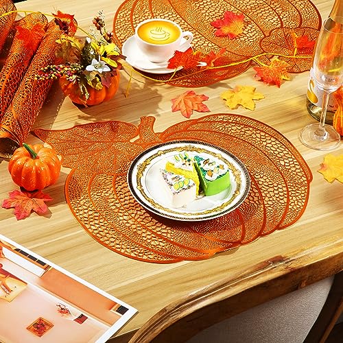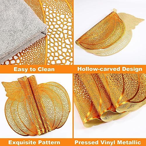 Exquisite Design: these Thanksgiving placemats are designed with hollow out and pumpkin shape, smooth surface, shiny appearance and eye-catching design, the place mats autumn can add more charm to your holiday party, impress your guests