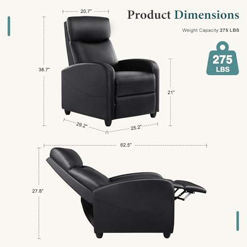 Specification: Smug Recliner Chair for Living Room, Leather Home Theater Seating with Lumbar Support with Adjustable Backrest and Footrest, Modern Living Room Furniture with Padded Seat Backrest, Black