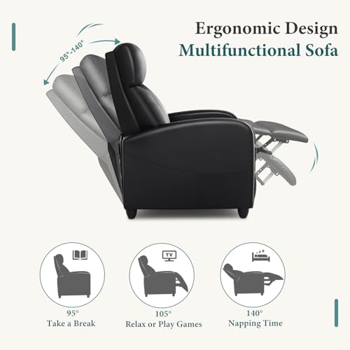 Specification: SMUG Recliner Chair for Living Room, Leather Recliners, Home Theater Seating with Lumbar Support with Adjustable Backrest and Footrest, Modern Living Room Furniture with Padded Seat Backrest, Black