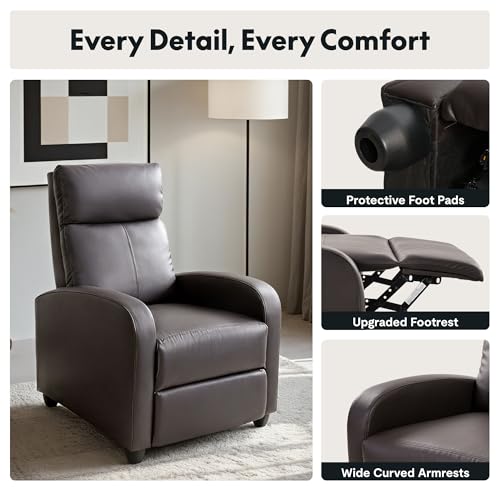 Specification: Softa Recliner Chair for Adults, Faux Leather Small Reclining Chair Home Theater Seating, Adjustable Modern Single Sofa Armchair for Living Room Bedroom (PU, Brown)