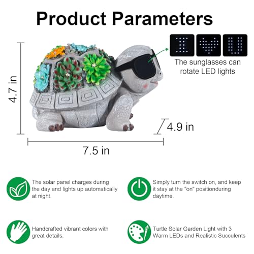 Specification: Solar Garden Statues Turtle with Succulent and LED Lights Birthday Gifts for Women Mom Grandma Solar Outdoor Decor for Patio Backyard Yard Lawn Decoration-Unique