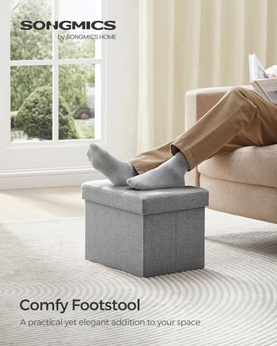 SONGMICS Mazie Collection – Small Folding Storage Ottoman, Foot Rest Stool, 12.2 x 16.1 x 12.2 Inches, 286 lb Load Capacity, for Living Room, Bedroom, Home Office, Dorm, Light Gray ULSF102G02