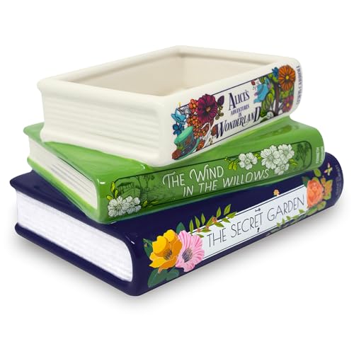 Specification: Steel Mill & Co Original Small Book-Shaped Decorative Planter, Ceramic Planter for Home Decor, Cute Bookshelf Accent, Unique Planter for Book Lovers, Alice/Wind in The Willows/Secret Garden