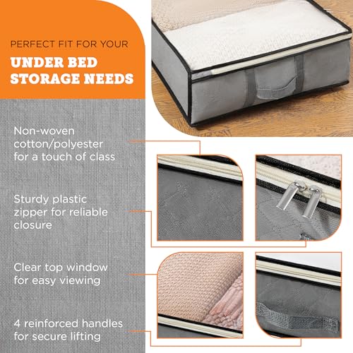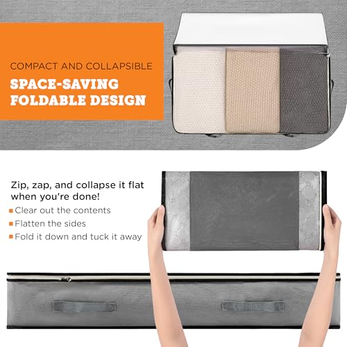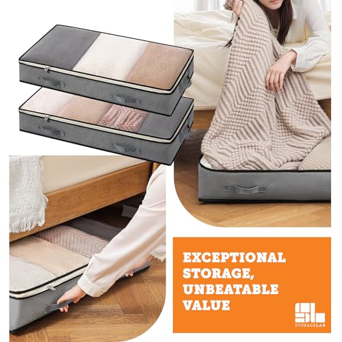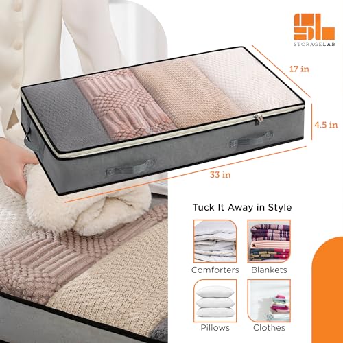 storageLAB Under Bed Storage Containers – Foldable Closet Organizer with Clear Top, Sturdy Handles – 7L Capacity Storage Box for Clothing, Comforter, Blanket, and Shoe – 2 Pack, Soft-Sided, Gray