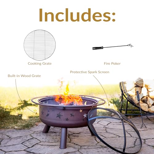 Specification: Sunnydaze Cosmic 30-Inch Patio Fire Pit for Outside – Outdoor Wood-Burning Fire Pit with Grill Grate, Spark Screen, and Fireplace Poker