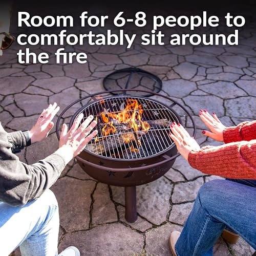 SERVE UP DELICIOUS FOOD: This round fire pit includes a sturdy, spark screen for added safety from flying sparks, a poker stick tool to easily keep an eye on the flame, a built-in wood grate for better airflow, and a BBQ cooking grate so you’ll be able to cook delicious food in the backyard or even as camping.