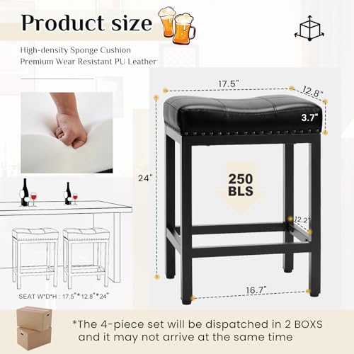 【Space-Saving & Functional】 Measuring 24”H, these counter height bar stools fit standard 34–40 inch tables and counters. Tuck them neatly under islands or bars when not in use to maximize space.