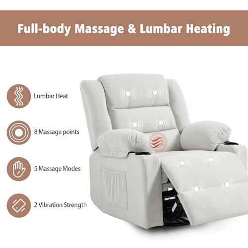 Specification: Swivel Rocking Recliner Chair with Massage and Heat,Oversized Rocker Recliner for Adults, Upholstered Fabric Reclining Single Sofa Chair for Living Room,Nursery (Beige)