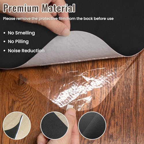 Superior Slip Resistance : The newly upgraded chair mat fabric offers enhanced slip resistance and durability compared to other mats, allowing chair casters to glide smoothly across its surface. Additionally, the mat’s underside features premium adhesive material. After peeling off the protective film on the back, the mat securely adheres to the floor, effectively preventing edge curling and leaving no residue upon removal.