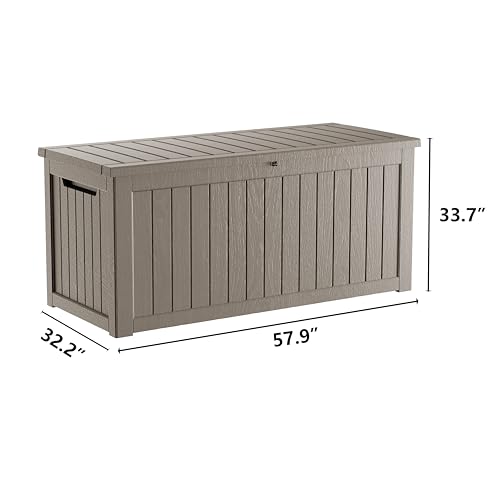 TARKARI 270 Gallon Lockable Resin Deck Box, Waterproof & UV-Resistant Outdoor Storage Box for Outdoor Cushion Storage, Garden Tools & Pool Accessories Storage, Gray