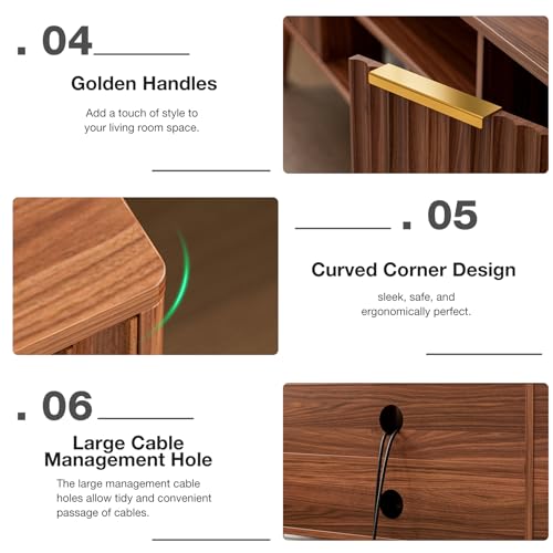Organized Storage: Includes a middle shelf & 2 spacious cabinets for your whole favorites. Plus, 2 rear cord holes keep wires neatly tucked away. Showcase or conceal – this mid-century entertainment center does it all with style.
