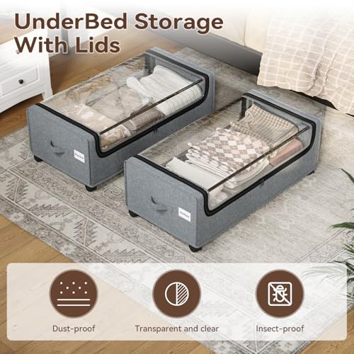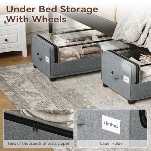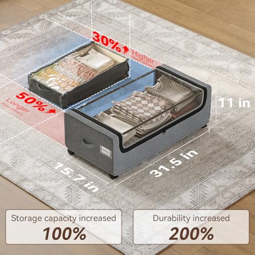 Easy Mobility with Locking Wheels: Featuring under bed storage with wheels, these units have 360-degree swivel casters—two with locks—for smooth movement and secure placement under your bed