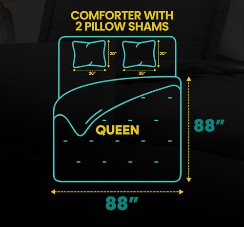 Luxurious Comforter Set: Indulge in ultimate comfort with our premium Queen-size down alternative comforter 88 inches x 88 inches, paired with two elegant pillow shams 20 inches x 26 inches + 2 inches flange. Designed with expert craftsmanship, featuring enhanced stitching for long-lasting durability.