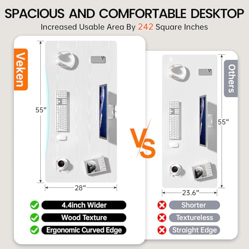 Veken 55 x 28 Inch Electric Standing Desk with Adjustable Height, Sit to Stand Computer Table for Study, Work or Gaming, Home Office Desk White