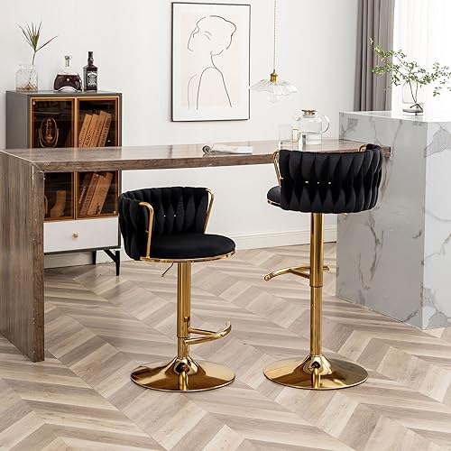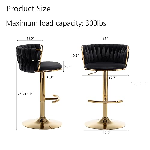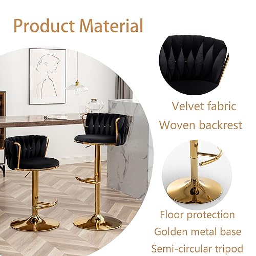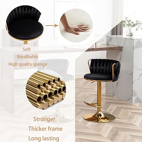 Specification: Velvet Bar Stools Set of 3, Counter Height Bar Chairs with Low Back, Gold Swivel Bar Stools for Kitchen Island, Pub (Black)