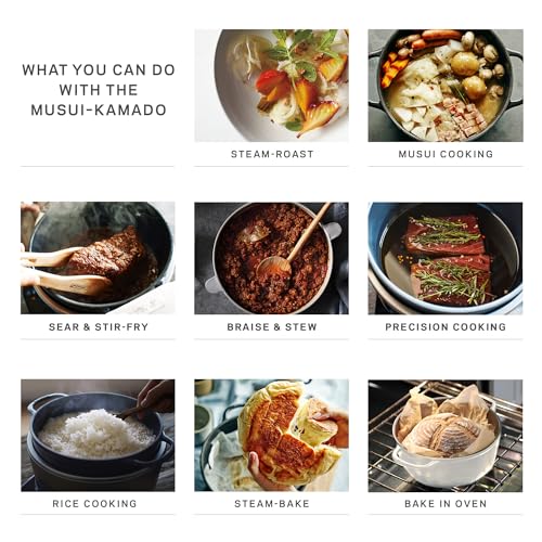 Versatile: Cooking techniques include musui “waterless” cooking, steam-roasting, searing, and stir-frying, as well as braising, stewing, precision cooking such as sous-vide and fermentation, and baking. It also features a dedicated rice-cooking mode.