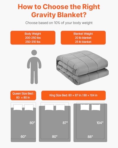 Find Your Ideal Fit: To verify maximum comfort, select a blanket in accordance with 10% of your body weight. The 20 lbs weighted blanket is ideal for adults weighing 200-250 lbs, and the 25 lbs weighted blanket is ideal for adults weighing 250-310 lbs.