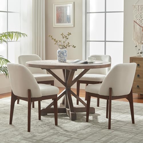 VKNOW Wooden Dining Chairs Set of 4, Upholstered Dining Room Chairs with Rubberwood Legs and Padded Seats, Kitchen Chairs for Restaurant Kitchen Living Room, Beige