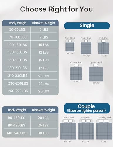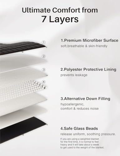 【UPGRADED 3.0 DESIGN】 The upgraded 5+2 layer lining design, combined with precise stitching craftsmanship, prevents bead leakage. The small enough 5”x5”compartments design ensures that the glass beads remain fixed in each and every compartment, ensuring even weight distribution of the twin weighted blanket.