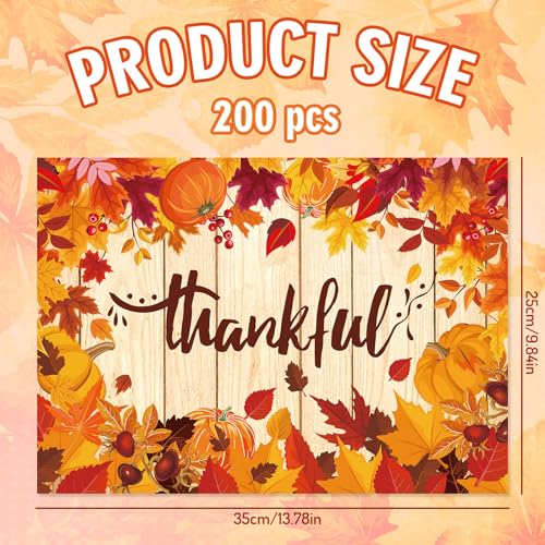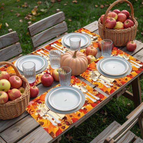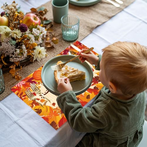 Whaline 200Pcs Fall Paper Placemats Maple Leaves Pumpkin Dinner Mats Autumn Thanksgiving Disposable Table Mats for Party Table Setting