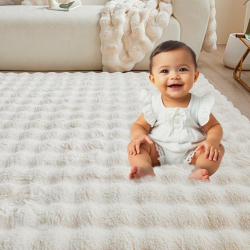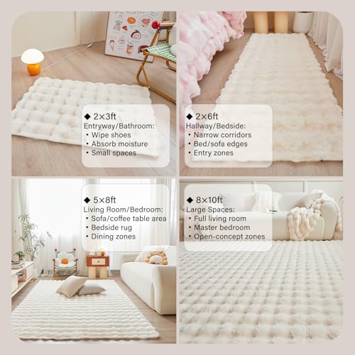 Specification: White Creamy Rabbit Plush Area Rug for Bedroom Living Room Sofa,8’X10′ Faux Fur Fluffy Shaggy Rectangular Square Rug for Kids Teen Girls Room,Furry Carpet Rug for Nursery Baby Room Decor for Teenage