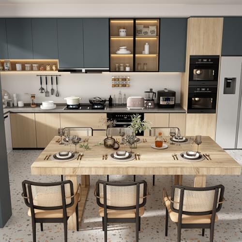 Specification: WOODTIME 86.6″ W Dining Table for 8-10 People, Versatile Modern Wooden Dinner Table Kitchen Table for Dining Room Conference Room, Light Brown