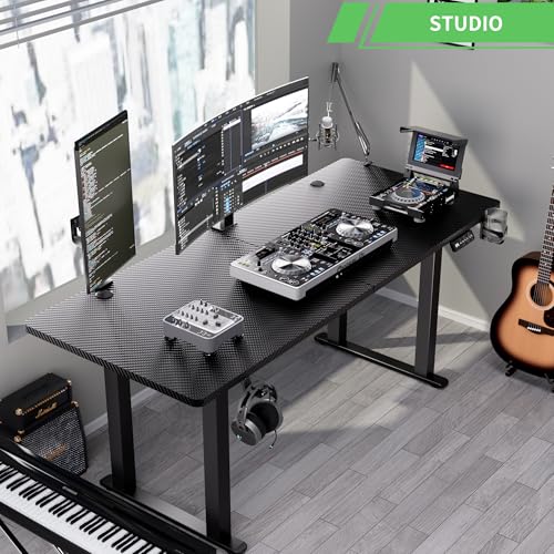 ☑【Ergonomic Sit Stand Desk】–Standing periodically throughout the long gaming time can relieve tension in the neck, back, and shoulders, increase blood flow, and reduce stress. With our sturdy large standing desk, you can easily transition from sitting to standing in seconds. Equipped with a dual motor lift system for smooth height transitions, memory control panel for customizable settings, and solid legs supporting up to 220 lbs!