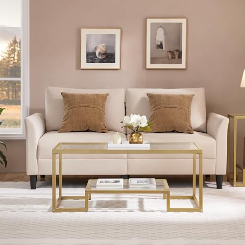 Specification: Yaheetech Gold Coffee Table, 42″ Rectangular Glass Coffee Table for Living Room, 2-Tier Center Tea Tables with Metal Frame for Small Space, Apartment, Office