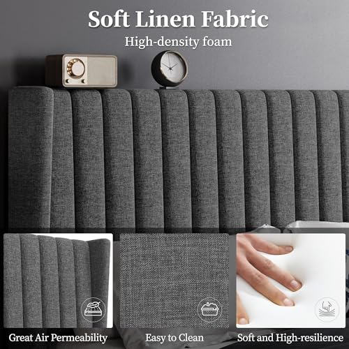 Classic Design: Classic simple geometric wing side style, channel headboard, and skin-friendly linen fabric, the king bed frame is a stunning decor for your bedroom furniture, seriously upgrading your room’s aesthetic