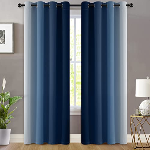 Yakamok Blue and Greyish White Ombre Curtains, Room Darkening Gradient Color Curtains for Bedroom, Light Blocking Thermal Insulated Window Drapes for Living Room(2 Panels, 52×84 Inch)